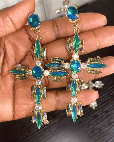 The BOHEMIAN LUXE CROSS EARRINGS are bold, lightweight, and dripping in glamour. Featuring rhinestone-encrusted crosses that sparkle with every turn, these stunners bring divine energy and high-fashion edge to any look. Dress them up, wear them out, and let them do the talking.