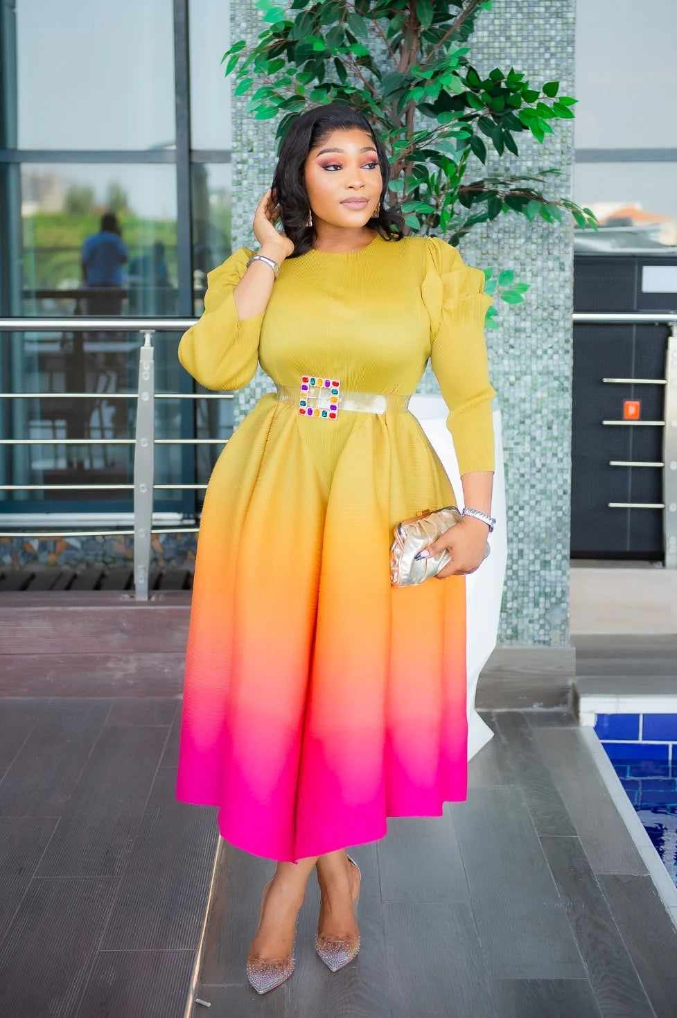 The LANTERN MAXI PLEATED DRESS  is pure magic in motion! With its dreamy gradient hues and flowy pleated design, this dress was made to twirl, sashay, and steal the show. Whether you're owning the night or catching golden hour vibes, this beauty ensures all eyes stay on you!