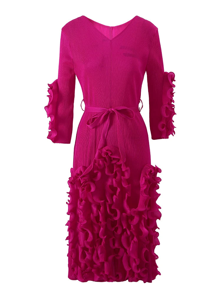 The NONI RUFFLES PLISSE DRESS is pure drama in motion! Layers of ruffles flow effortlessly with every step, while the delicate plissé texture brings that chic, elevated vibe. It’s bold, flirty, and ready to steal the spotlight — because blending in was never the plan.