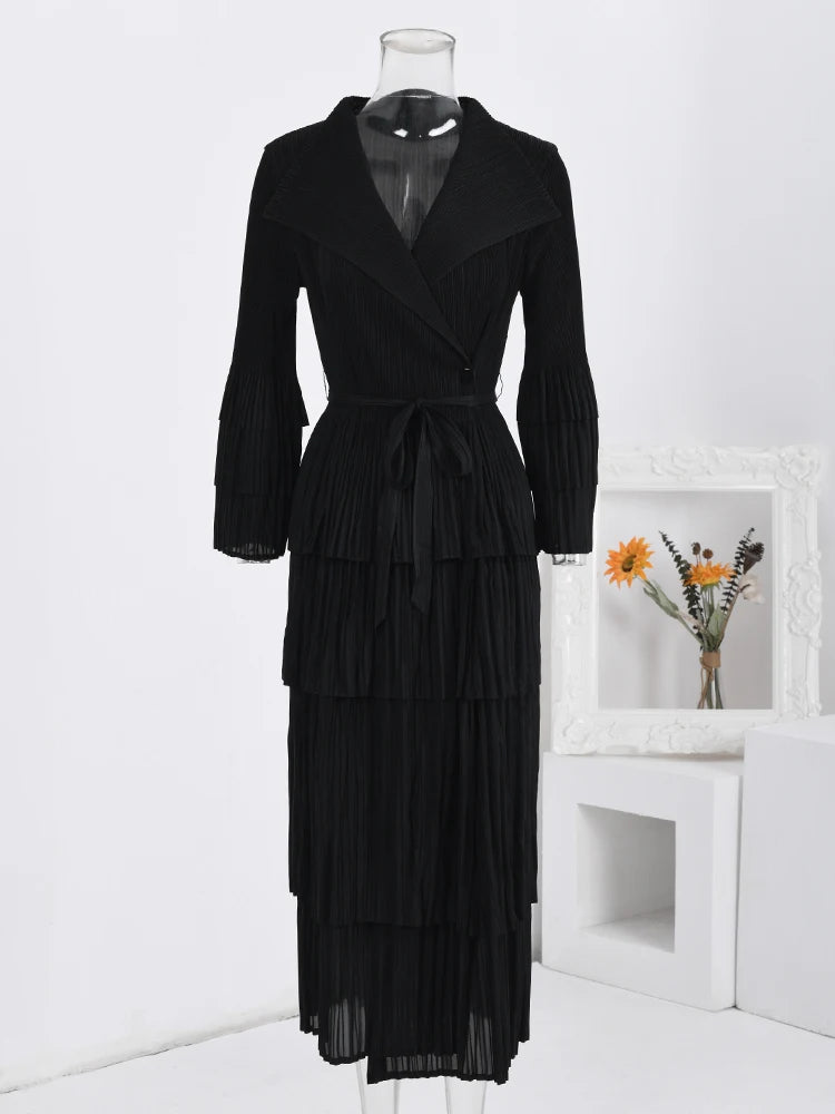 The NOTCHED COLLAR PLISSE DRESS is where sleek meets chic. With its sharp, tailored collar and flowing pleated fabric, this dress strikes the perfect balance between power and grace. It’s giving boss babe vibes with a side of effortless glam — ready to command the room, no matter where you’re headed.