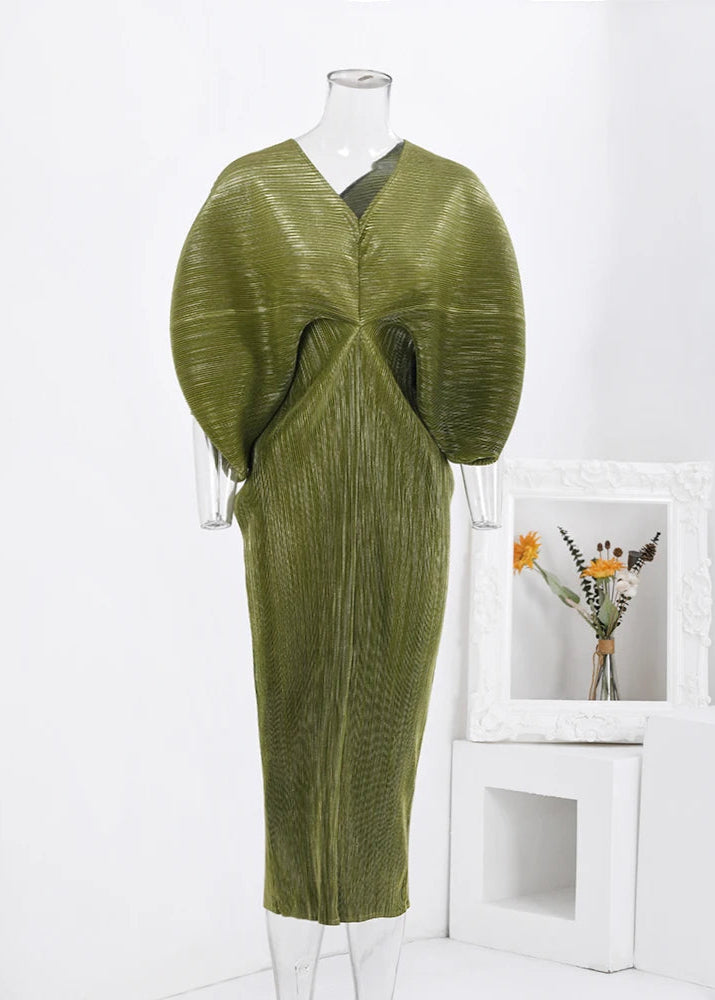 The SHIMMER FRENCH PLISSE DRESS is where elegance meets attitude! With its luxe pleats and radiant shimmer, this stunner flows effortlessly, making sure all eyes stay on you. Classy, chic, and totally unforgettable!