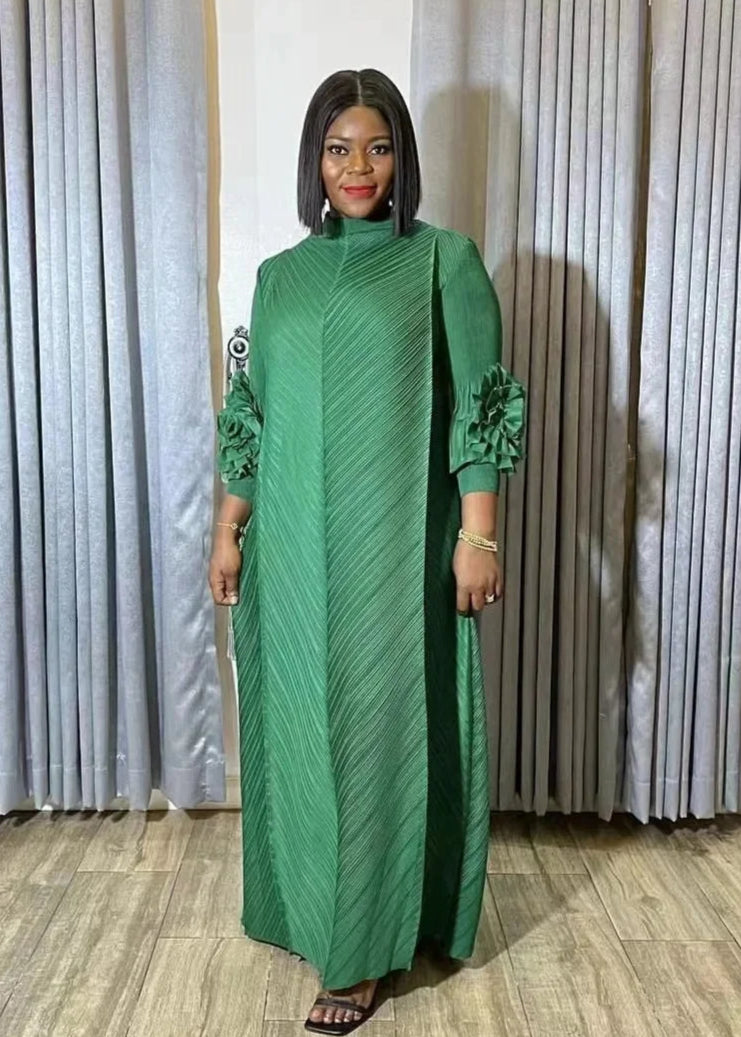 The SOLID MAXI PLEATED DRESS is pure elegance with a bold twist! Featuring a mesmerizing design that flows effortlessly with every step, this dress is giving drama, grace, and major main-character energy. Whether you're floating into a soirée or owning the streets, this stunner guarantees all eyes on you!
