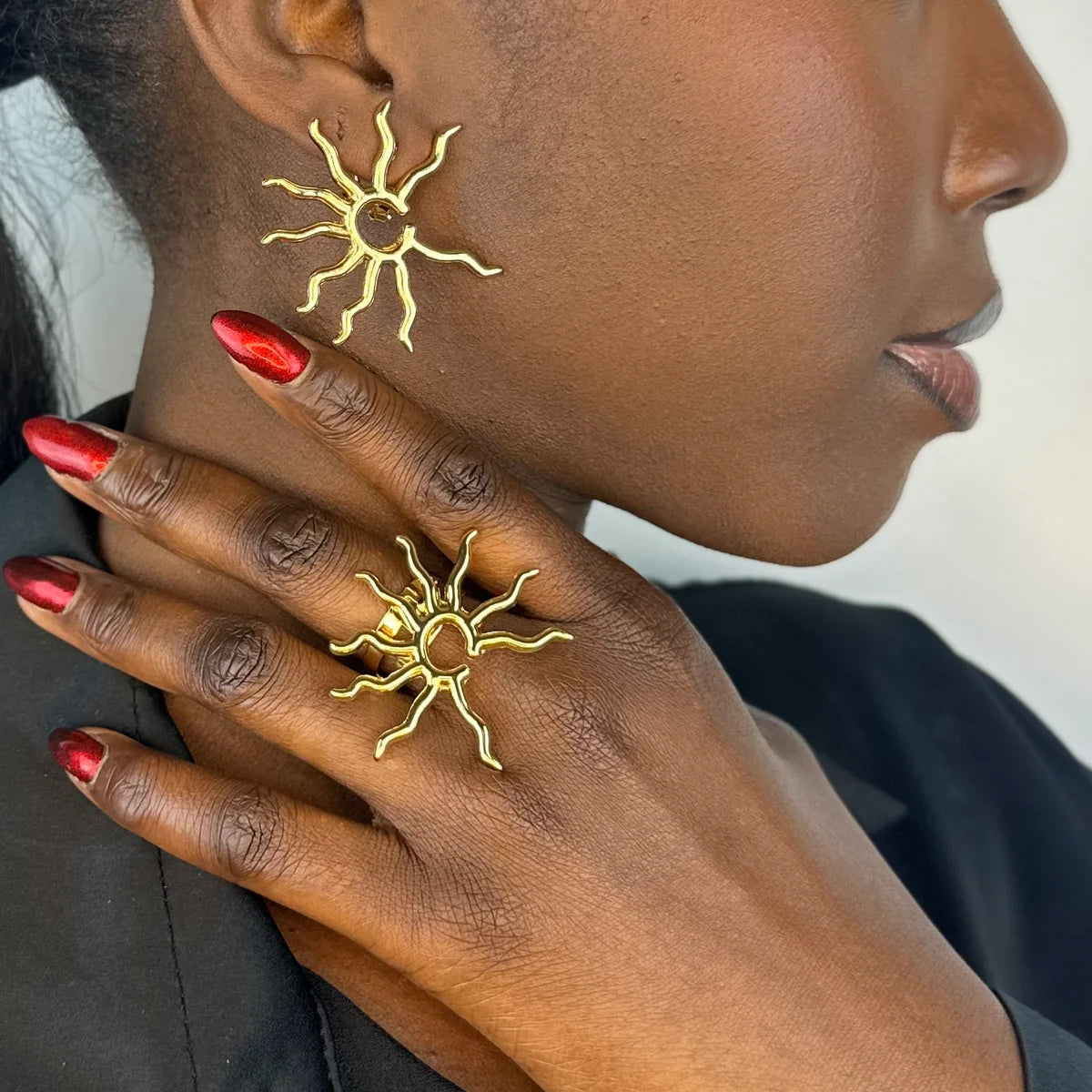 The Africa Sunset Earrings Set brings golden-hour energy to your look—bold, radiant, and rooted in culture. Featuring an iconic African map design infused with sunset-inspired elegance, this matching earrings and adjustable ring set is crafted from durable African stainless steel brass for lasting shine. It’s more than jewelry—it’s a tribute to heritage, strength, and unapologetic beauty.