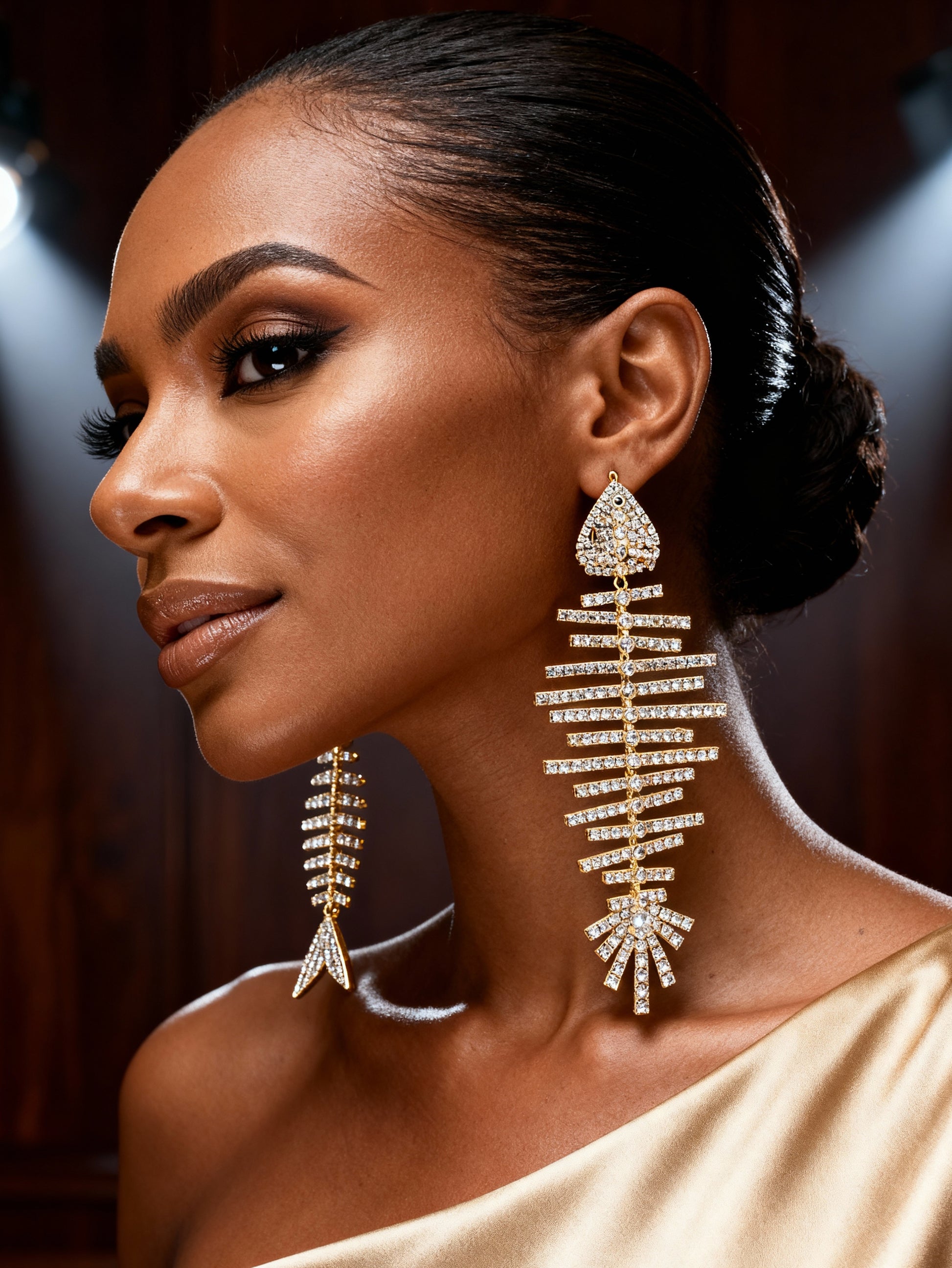 The BONEFISH LUXE EARRINGS are oversized, outrageous, and absolutely unforgettable! Designed in a bold fish shape and drenched in shimmering crystals, these statement earrings bring all the ocean-inspired glam with a luxe twist. Lightweight but full of drama, they’re made to move, sparkle, and turn heads wherever you go.