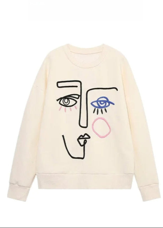 The BRIANNA ABSTRACT SWEATSHIRT is here to make a statement, babe! Featuring a bold abstract face design, this soft cotton-poly blend is your new go-to for effortless chic.
