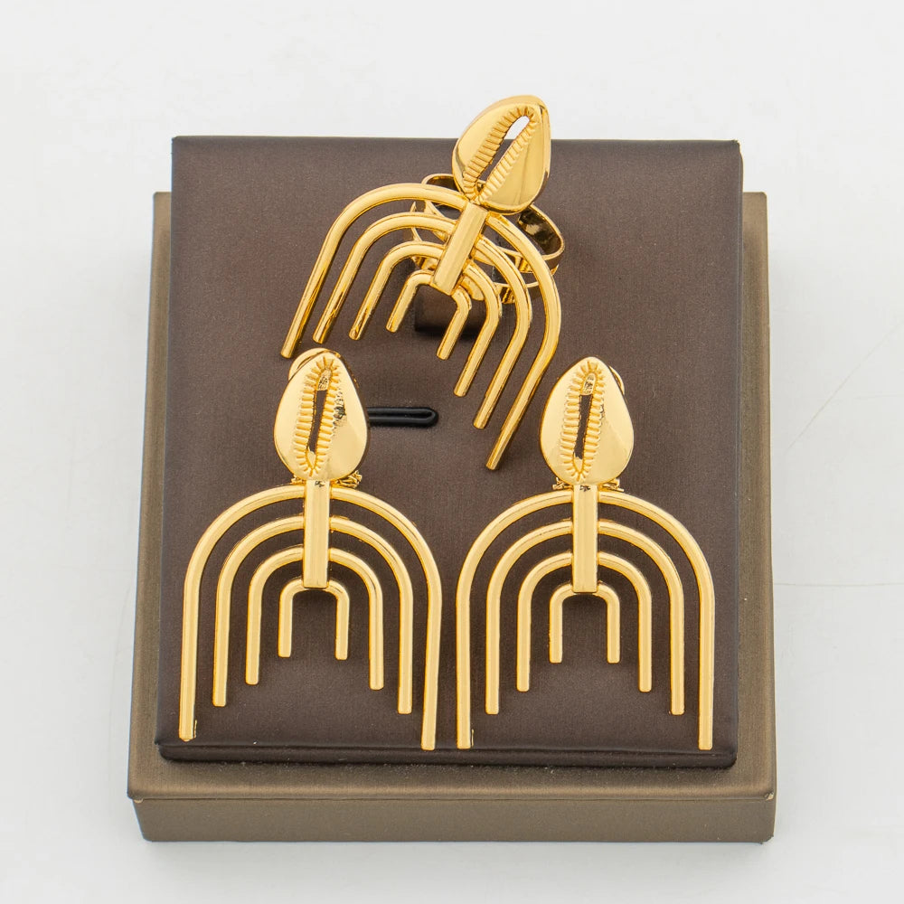 The Comb Cowrie Earrings Set is a bold celebration of culture, strength, and style. Inspired by the iconic African comb—a symbol of power, pride, and identity—this matching earrings and adjustable ring set is crafted from durable African stainless steel brass, made to last and built to shine. It’s heritage reimagined with a modern baddie twist: fierce, elegant, and unapologetically loud.