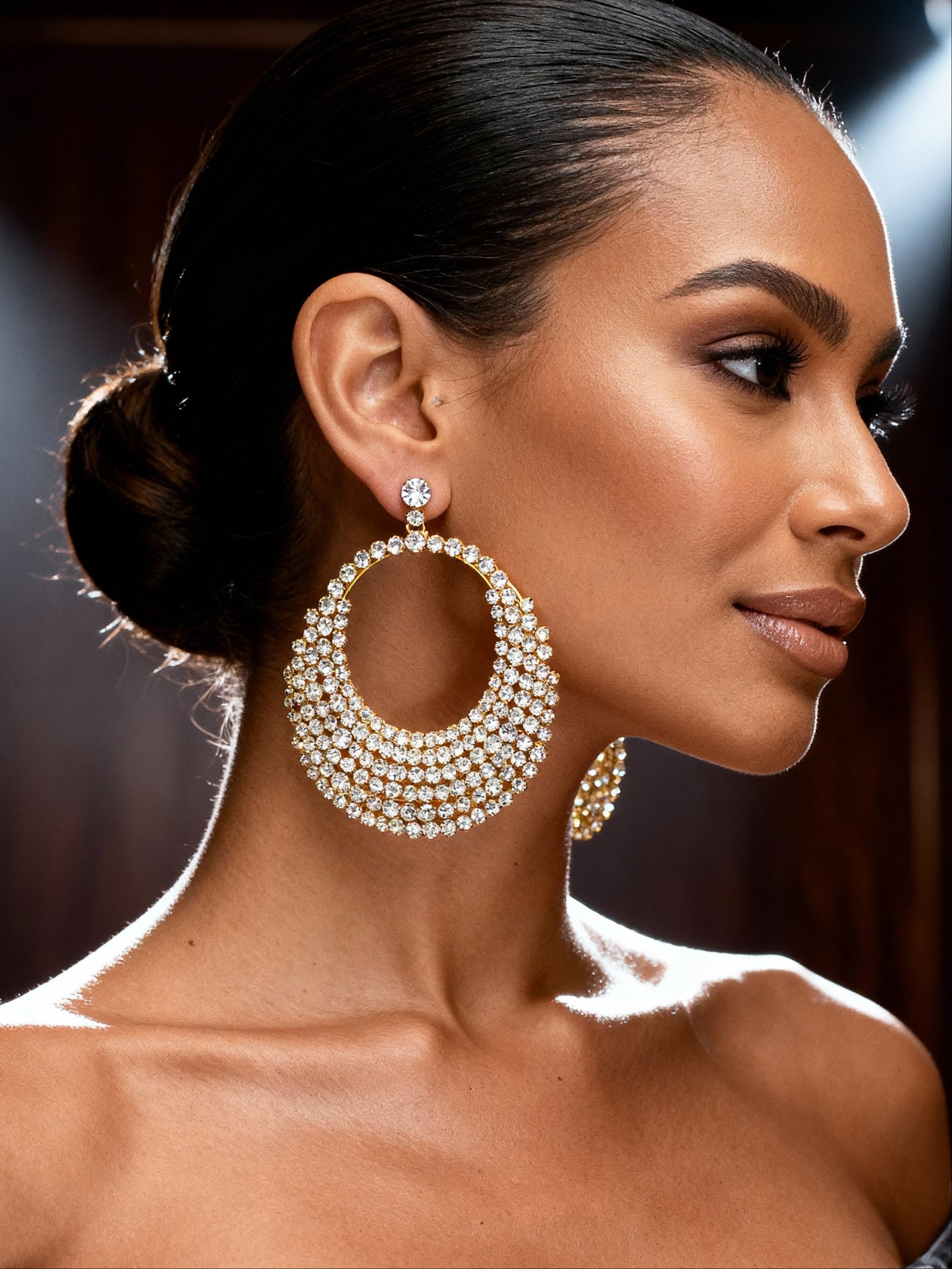 The ELAINE CRYSTAL HOOP EARRINGS are your ultimate glow-up! Featuring a hollow design with sparkling crystals and finished in 18k gold-plated alloy, these hoops bring luxe shine without the weight. Bold, glamorous, and totally unapologetic