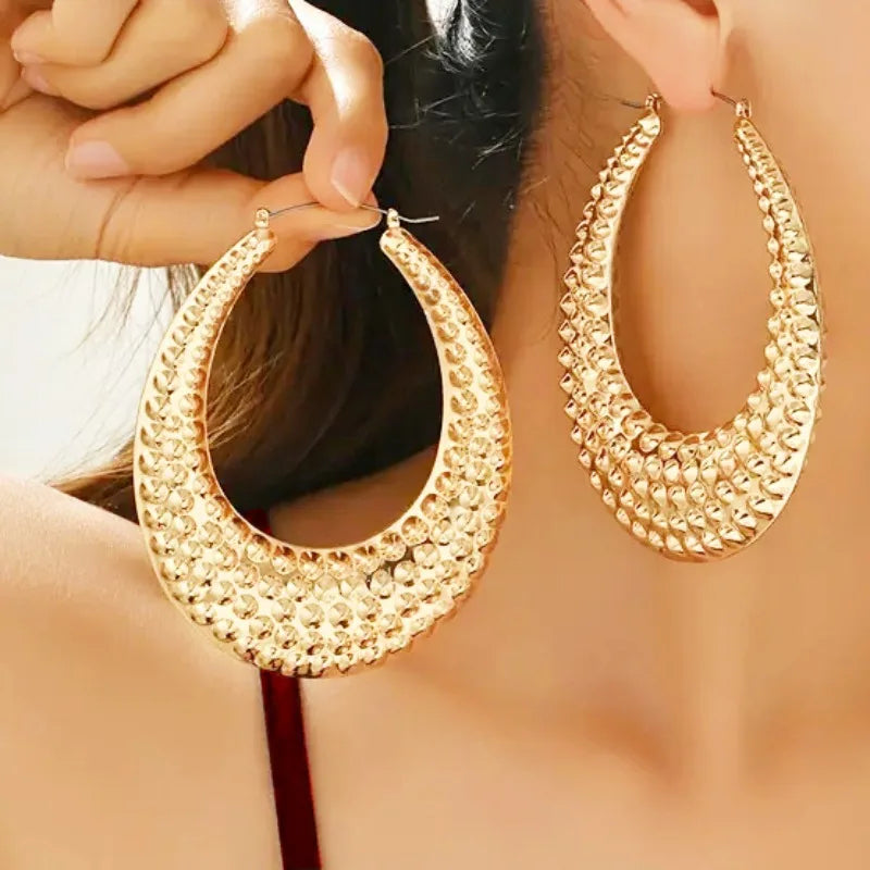 ETHLYN NET HOOPS—crafted to perfection with a striking net pattern that’s all about texture and attitude. These hoops aren’t just accessories; they’re statement-makers, blending edgy design with sleek elegance. Lightweight but bold, they’re perfect for adding instant drama to any outfit. Wear them solo to slay or stack with your favs for next-level vibes