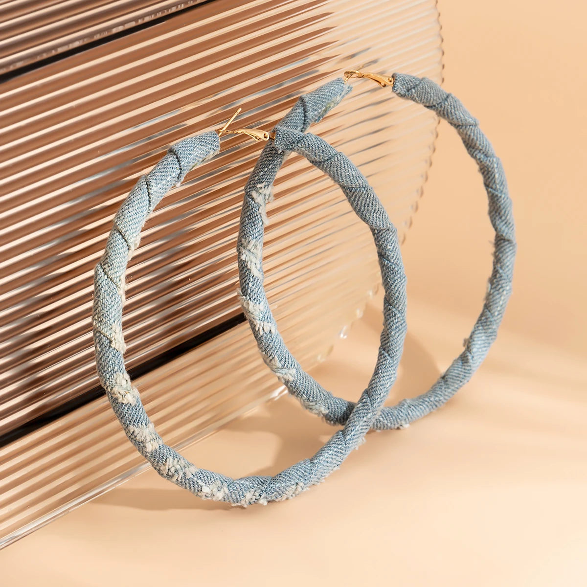 The GOZIE DENIM HOOPS are serving bold structure with a laid-back twist. Featuring a unique geometric shape wrapped in denim fabric, these hoops are where edgy meets effortlessly cool. Lightweight, standout, and totally unexpected—they're the perfect combo of street style and statement glam.