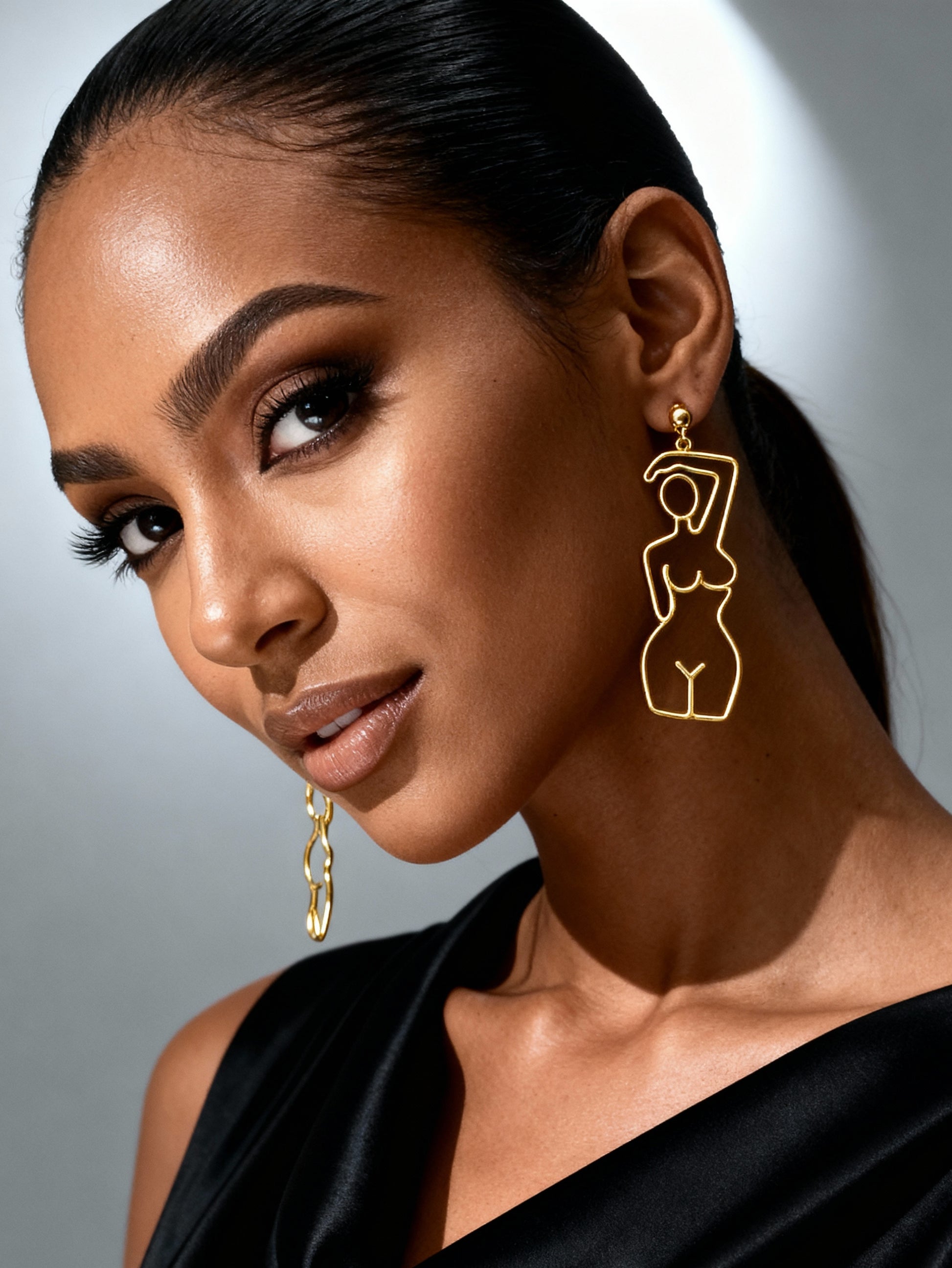 The HER BODY STATEMENT EARRINGS are a bold tribute to feminine beauty! With an elegant body art shape, these striking earrings celebrate confidence, curves, and unapologetic style.