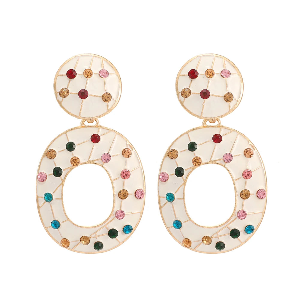 The KALMA RHINESTONE EARRINGS are pure sparkle and sophistication. With double-circle design adorned in dazzling dotted rhinestones, these earrings bring glam and shine to any outfit. Perfect for turning heads and adding that extra bit of luxe to your look!