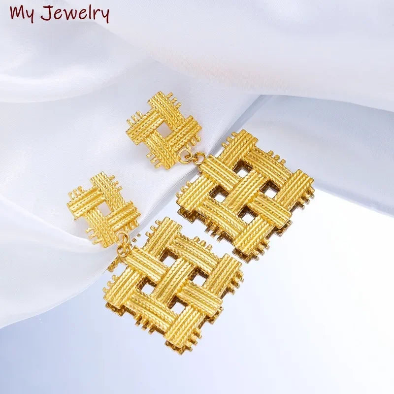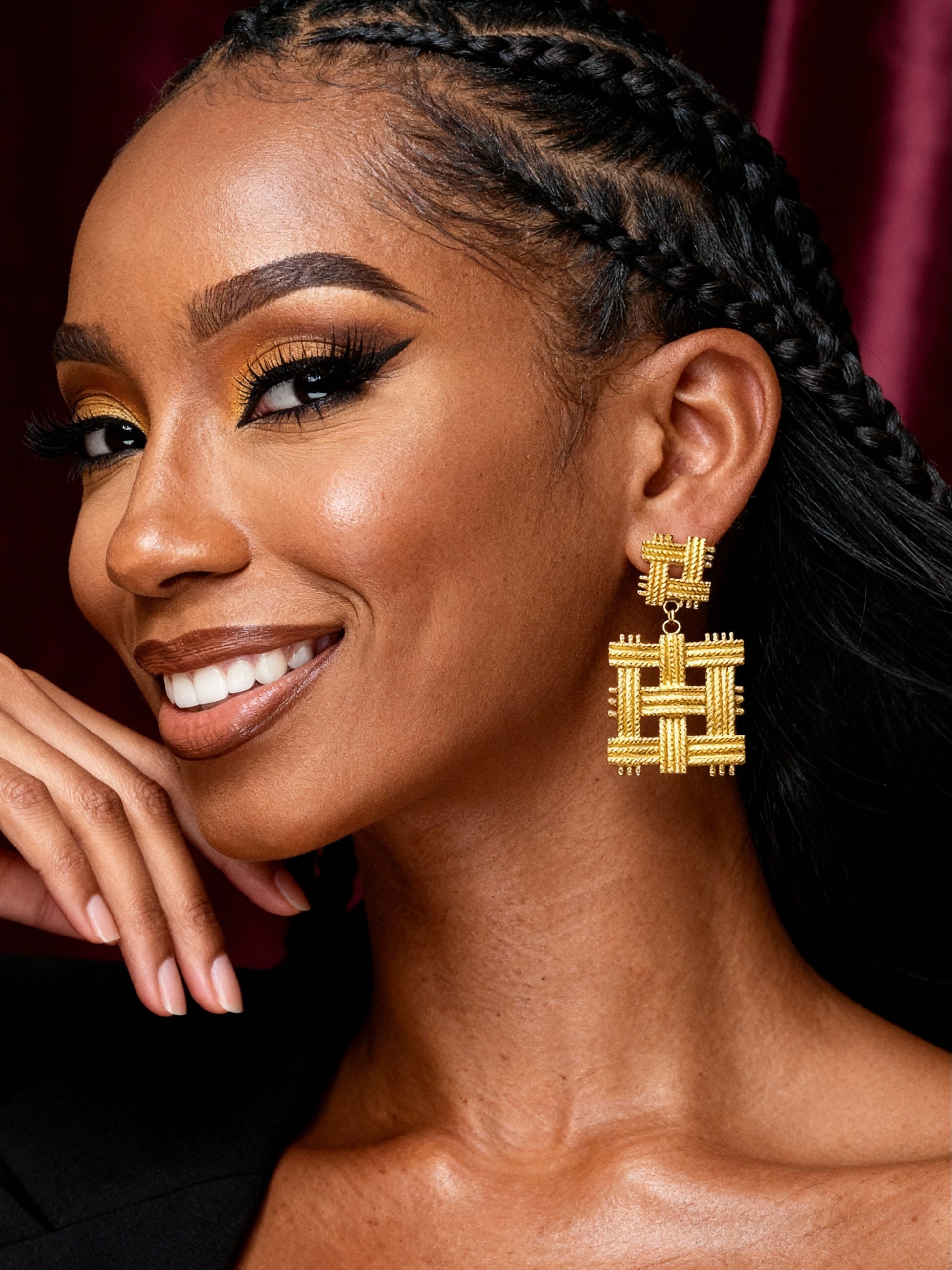 The Square Weave Dangle Earrings are serving bold energy with a touch of effortless chic. Featuring a sleek woven square design that moves with every step, these stunners bring texture, shine, and statement vibes to any look. Lightweight but loud, they’re perfect for dressing up your fit or turning a casual slay into a full moment.